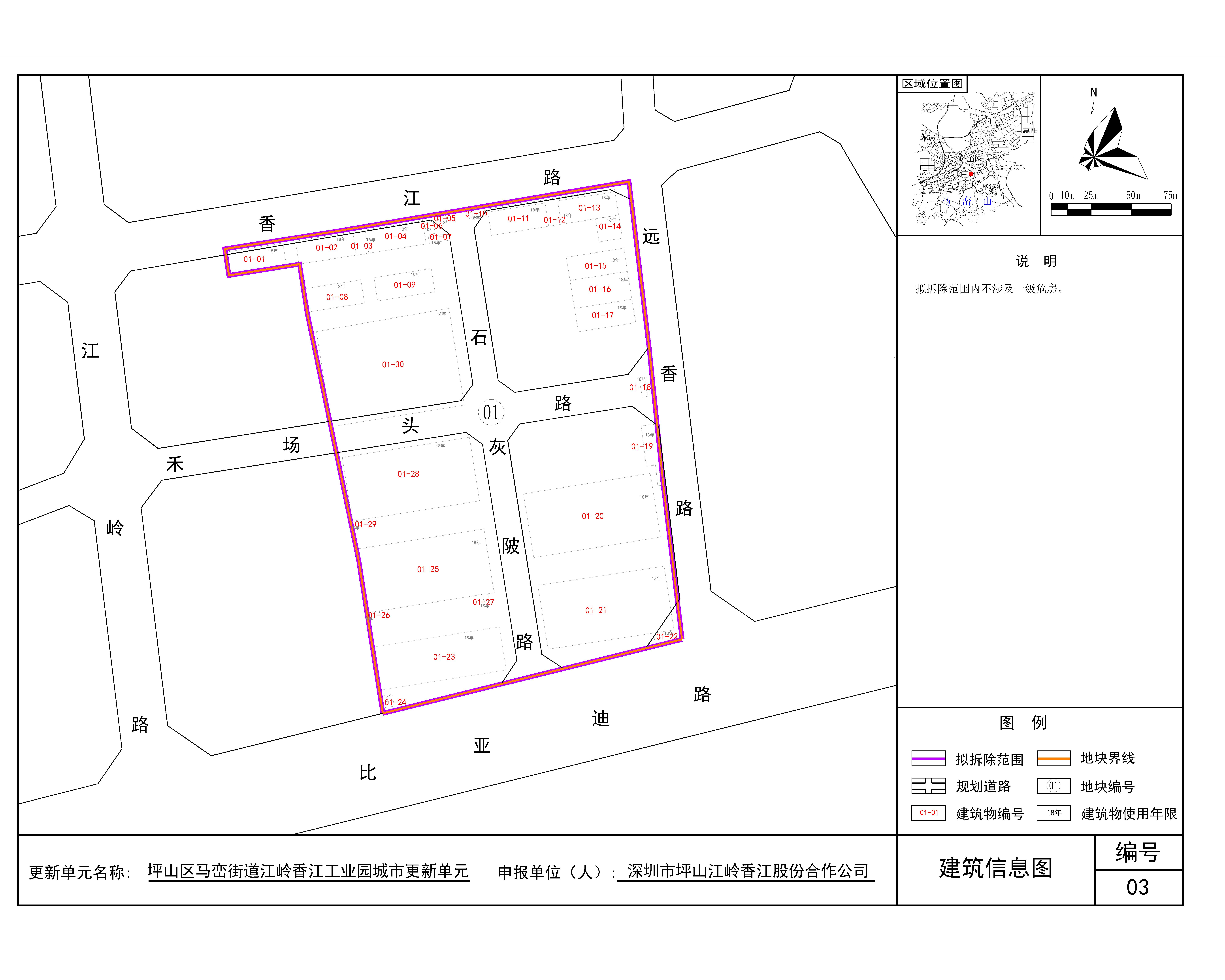 深圳市坪山江岭香江股份合作公司向我局申请将该城市更新单元纳入深圳市城市更新单元计划。根据《深圳经济特区城市更新条例》、《深圳市坪山区城市更新实施办法》(深坪府规〔2018〕8号)、《深圳市拆除重建类城市更新单元计划审批操作规则》(深规划资源〔2019〕70号)等相关规定,为维护该片区物业权利人的相关权益,现将物业权利人、更新意愿和建筑物现状情况进行公示,具体如下: